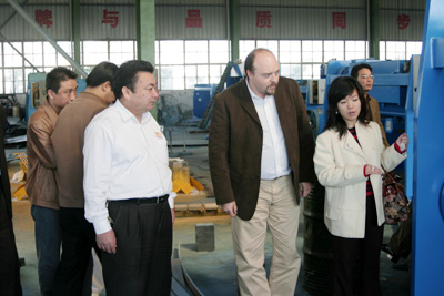 2004年10月27日上午,西班牙羅雷爾公司總經(jīng)理瓊斯·巴拉先生一行來(lái)我公司參觀考察,瓊斯·巴拉先生對(duì)我公司的剪板機(jī)、折彎?rùn)C(jī)等產(chǎn)品非常感興趣并與公司領(lǐng)導(dǎo)洽談了相關(guān)合作意向!