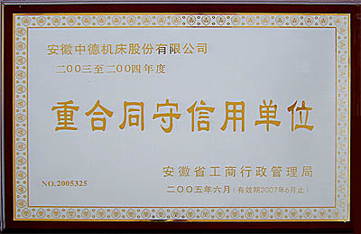 為認(rèn)真貫徹落實(shí)十六大提出的“整頓和規(guī)范市場(chǎng)經(jīng)濟(jì)秩序,健全現(xiàn)代市場(chǎng)經(jīng)濟(jì)的社會(huì)信用體系”的精神,規(guī)范市場(chǎng)經(jīng)濟(jì)秩序,推動(dòng)社會(huì)信用制度建設(shè),培養(yǎng)良好的社會(huì)信用環(huán)境,樹(shù)立誠(chéng)信為本的社會(huì)風(fēng)尚,表彰我省企業(yè)在市場(chǎng)交易中,堅(jiān)持“守約重信”的經(jīng)營(yíng)道德,弘揚(yáng)先進(jìn)的企業(yè)合同管理方式,倡導(dǎo)誠(chéng)信理念,服務(wù)經(jīng)濟(jì)建設(shè),提升企業(yè)信用等級(jí),根據(jù)《安徽省重合同守信用單位認(rèn)定暫行辦法》的規(guī)定,組成了以省工商局、省建設(shè)廳、省質(zhì)監(jiān)局、省國(guó)稅、省地稅、省消協(xié)和銀行等部門參加的安徽省重合同守信用單位評(píng)審委員會(huì),對(duì)全省申報(bào)2003-2004年度省級(jí)“重合同守信用”的單位,依照程序,嚴(yán)格評(píng)審?,F(xiàn)結(jié)果已揭曉,我公司為獲些榮譽(yù)的企業(yè)之一。