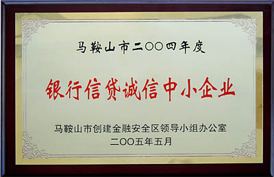 我公司獲馬鞍山市“銀行信貸誠(chéng)信中小企業(yè)”