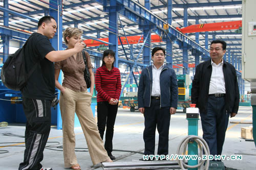 這位波蘭客人對(duì)機(jī)械行業(yè)非常了解,她告訴我們,他們的工廠車(chē)間里正在使用歐美品牌的同類(lèi)機(jī)器,對(duì)其使用和操作流程都非常的熟悉,當(dāng)然,看機(jī)器的眼光也是相當(dāng)?shù)膶I(yè)。這次中德行的目的主要是考察我們公司的大型雙機(jī)聯(lián)動(dòng)折彎?rùn)C(jī)。參觀過(guò)我們的投入使用不久的大型裝配車(chē)間后,客人立即表示對(duì)中德的生產(chǎn)規(guī)模和產(chǎn)品質(zhì)量非常的滿意,是一家值得信賴和合作的優(yōu)秀制造商,客人希望以后能夠代理我們的產(chǎn)品以期與我們建立長(zhǎng)期合作的貿(mào)易關(guān)系。
