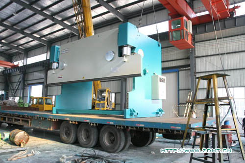 由于機(jī)器體積較大,高度超過3.5米,重量在50噸以上,所以采用了分體式運(yùn)輸,工作臺與機(jī)器主體分離開來。這種大型機(jī)床由于其體積與重量的關(guān)系,并不是很常見,需求量相對來講少點(diǎn),而對制造商的要求也相對比較高,其中無不體現(xiàn)中德產(chǎn)品在客戶心目中認(rèn)可度!