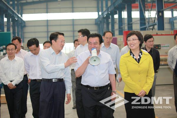 唐承沛副省長在公司董事長鄭長玉陪同下深入到公司裝配車間,當了解到我公司目前銷售形勢很好、處于供不應求的狀態(tài)時,唐承沛非常高興,要求企業(yè)一定要注重品牌建設,生意好、訂單多的時候,更要保正產品穩(wěn)定可靠的品質,良好的產品質量才能使企業(yè)在強大的競爭中立于不敗之地,使公司得以持續(xù)發(fā)展,從而贏得更大的市場空間;聞悉,我公司數控化的比例現(xiàn)在約占到總量的40%左右,唐承沛表示,機床屬于傳統(tǒng)的裝備制造業(yè),向高科技、數控化發(fā)展已經是大勢所趨,只有科技含量高,產品的附加值才能上去,在國際分工中才有一席之地,我國已有不少傳統(tǒng)機床企業(yè)通過科技創(chuàng)新,自主研發(fā)出高、精、尖的產品來替代原先進口的產品?!笆濉币?guī)劃中,國家將裝備制造業(yè)列為重點建設項目,相信中德可以利用這個契機,生產出更多更好的產品貢獻于社會,唐承沛副省長鼓勵企業(yè)努力將中德機床品牌打造成為“中國馳名商標”。