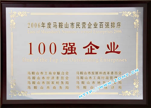 近期,由馬鞍山市工商業(yè)聯(lián)合會(huì)及馬鞍山市總商會(huì)聯(lián)合主辦,市發(fā)改委,經(jīng)委,工商局,國稅局,地稅局,商務(wù)局,統(tǒng)計(jì)局共同組織開展的2006年度全市民營(yíng)企業(yè)百強(qiáng)排序工作已落下帷幕。我公司入圍2006年馬鞍山市民營(yíng)企業(yè)營(yíng)業(yè)收入總額100強(qiáng)及市民營(yíng)企業(yè)納稅總額100強(qiáng),也是我公司連續(xù)三年獲此殊榮。